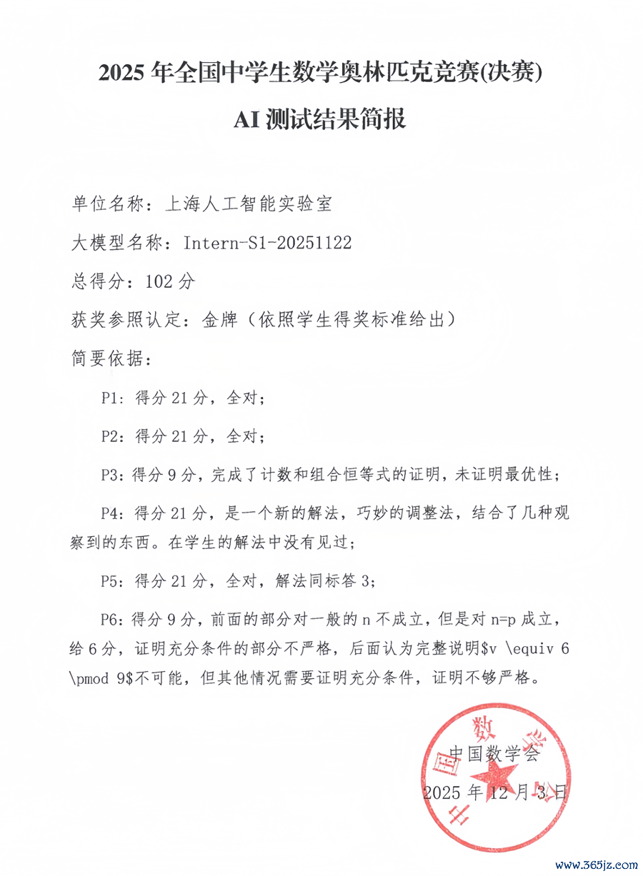 不久前,在宇宙中学生数学奥林匹克竞赛(CMO)决赛中,由上海东说念主工智能施行室研发的“书生”科学多模态大模子(Intern-S1)赢得了102分(满分126分)的高分,不仅远超78分的金牌分数线,更“一脚迈过”国度集训队入选线87分。